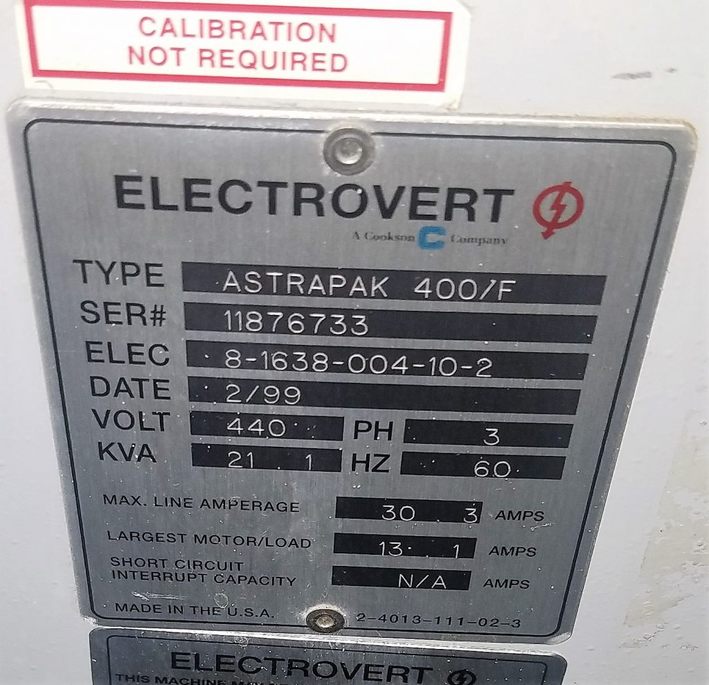 1999 Electrovert Astrapak – serial tag Published August 18, 2017 at 1477 × 1426 in 1999 Electrovert Astrapak – serial tag